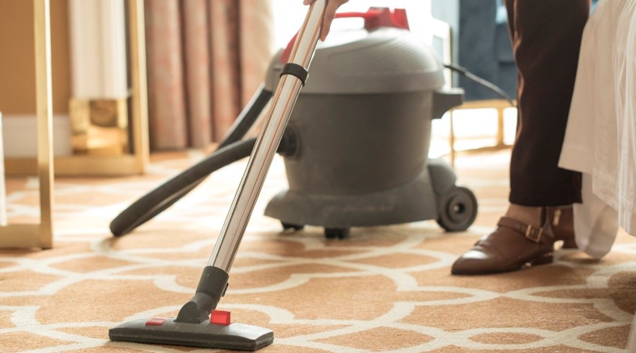 用吸塵器全面吸塵,稀釋清潔劑,也可注入水箱。在地毯上全面噴灑清潔劑,作用10-15分鐘后,污漬脫離纖維,用洗地機(jī)抽洗,操作向后行走而使每操作行有一部分重疊,最少經(jīng)過兩次抽洗,在清洗地毯的同時(shí),用吸水機(jī)吸凈已洗完的地毯,讓地毯完全干透,為加快地毯干透,可開動地毯吹干機(jī)。